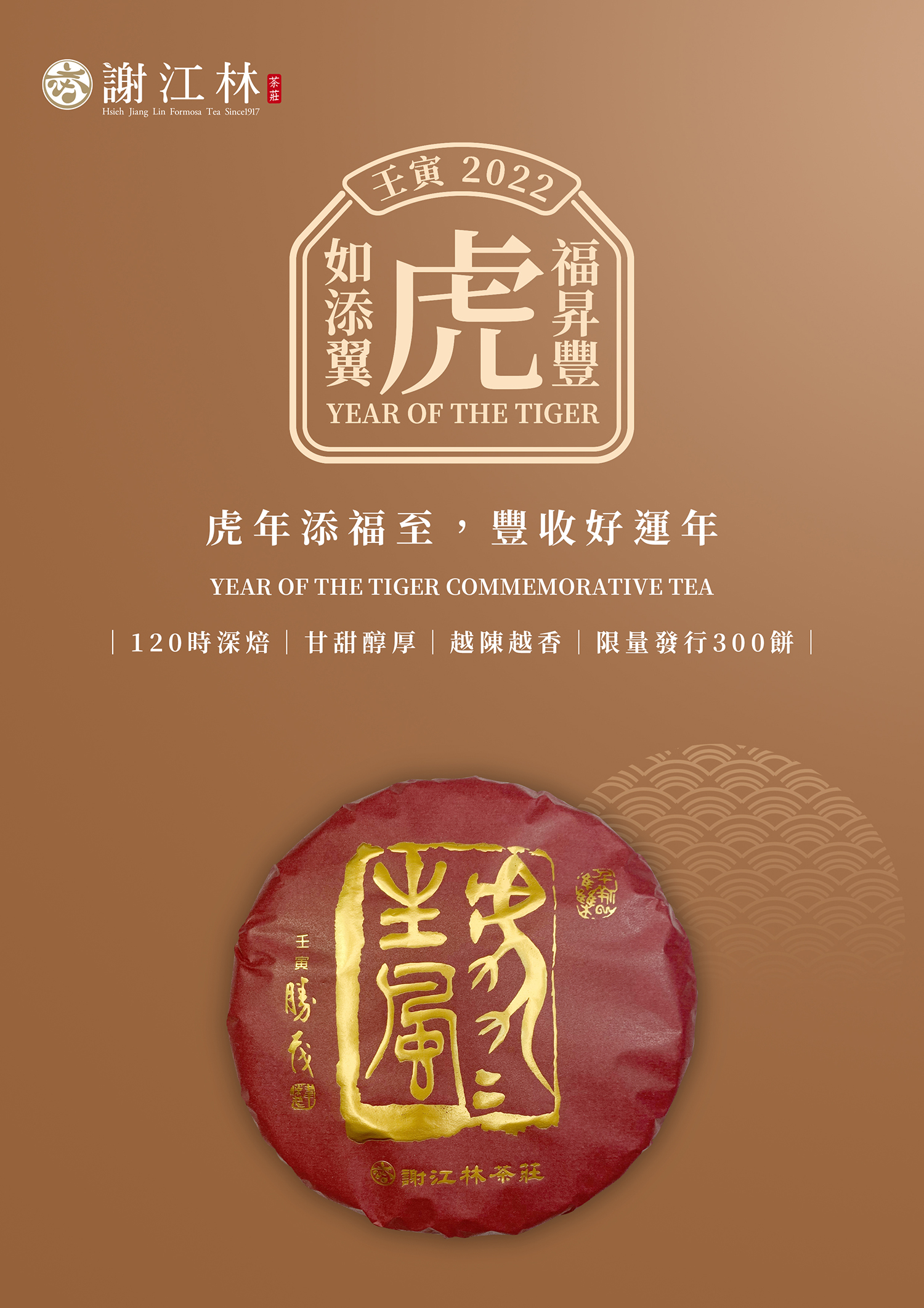 《台灣圓茶,溫暖團圓的渴望》 很快地,又是一年。謝江林茶莊推出生肖圓茶走入第4個年度,期許朋友們新的一年會有更好生活、更豐收的一年,我們面對未來,有的是美好的期許與希望。篆刻名家韋勝茂老師燙金「虎虎生風」紀念圓茶|12年陳老茶|總量300餅|精裝禮盒 在走訪親友時帶上它吧,這不僅僅是ㄧ餅圓茶,象徵著團圓外,裡頭更有您的祝福和對親友之間的情誼。 2022年我們一樣不會被疫情所擊倒,對於變化的世界,相信我們已準備好面對躍上。謝江林茶莊祝福大家「壬寅迎春來,福虎昇豐至」。